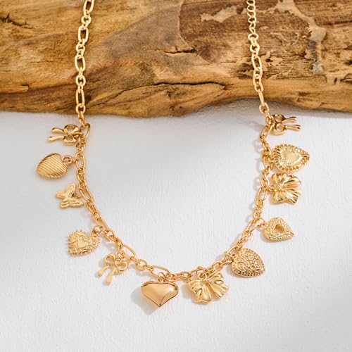 • Charming Y2K - inspired Design:This necklace boasts a cute and funny Y2K - style delicate gold chain, adorned with heart, butterfly, and bow charms that exude retro - futuristic charm and playful elegance.