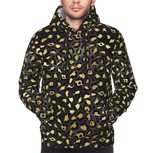 HOT ! Hoodies For Men - Gold Black Leopard Print Long Sleeve Casual Men'S Hoodies & Sweatshirts Pullover With Pocket