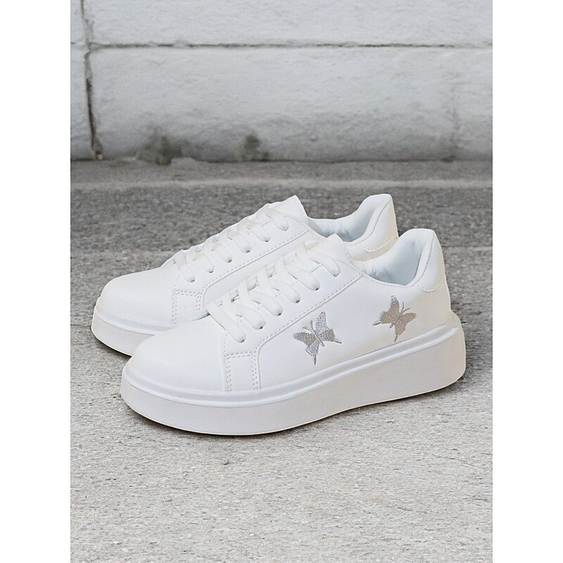 Women's White Platform Sneakers with Butterfly Embroidery | Casual Lace-Up Shoes for Everyday Wear 1