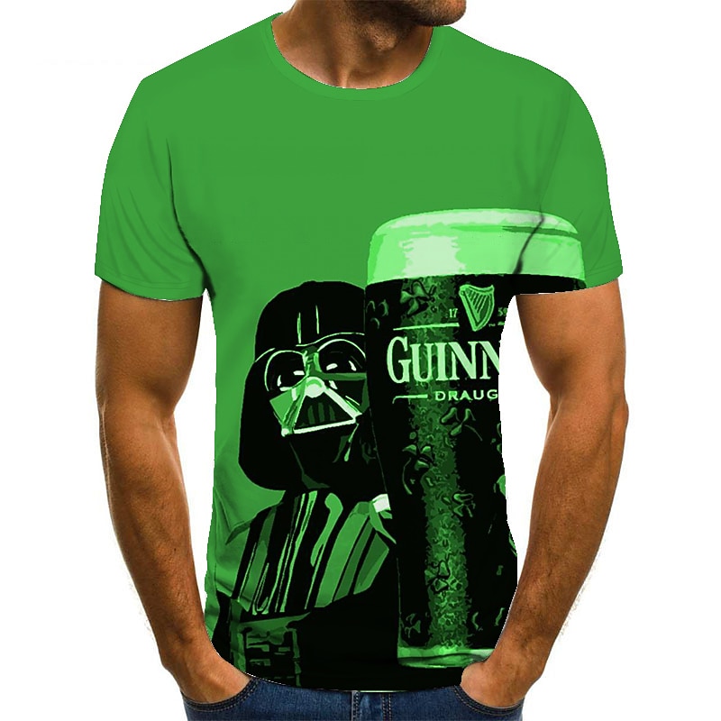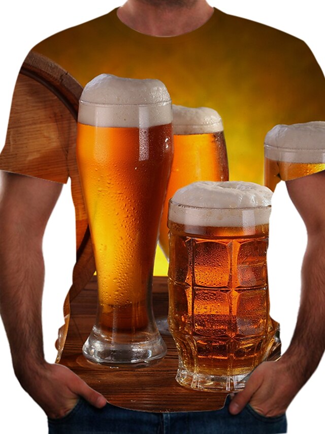 More information about Men's Color Block 3D Beer Shirt T Shirt Short Sleeve T shirt Round Neck Shirt Basic Going out Weekend Yellow Dark Green Green Clothing Apparel Plus Size S M L XL 2XL 3XL 4XL