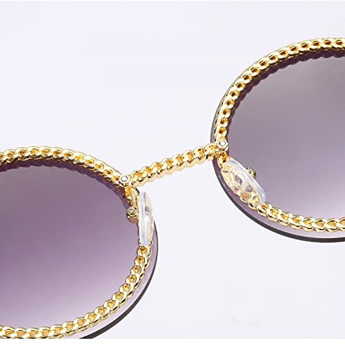 More information about HMRGLMIE-Gold Frame Sun Glasses Female Shades Vintage Round Sunglasses Women with Pearl Chain Accessory Design Retro