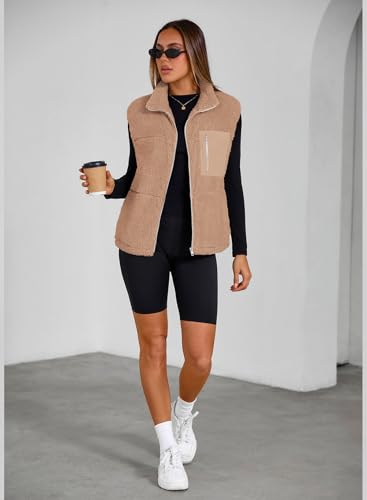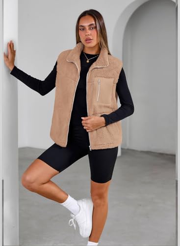 SimpleFun Women's Fuzzy Fleece Vest Trendy Zip Up Sleeveless Sherpa Jacket Stand Collar Winter Coat Outerwear with Pockets 6