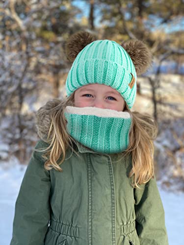 Simplicity Kids Cute Pom Pom Winter Beanie Hat and Scarf Set for Boys Girls Kids Knitted Fleece Lined Skull Scarf Set 2