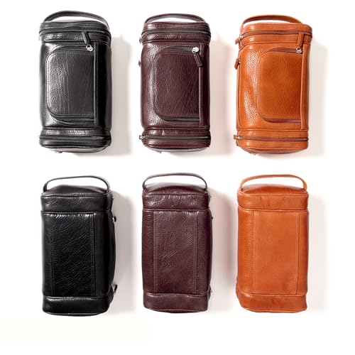 Fabric type: Vegetable tanned full grain Italian leatherFull grain leather: Made from full grain leather in pebbled and smooth textures. This leather has a soft hand feel that ages beautifully and is available in a range of classic and neutral colors.Toiletry bags in Ebony, Espresso, and Whiskey are vegetable-tanned Italian leather, made in small batches from full grain buffalo shoulders and finished with a hand glaze.Multi-pocket toiletry bag measures 5H x 10.5W x 6.5D.Spacious compartments: The top zippered compartment is the largest and holds all your soaps and cologne. Two zippered compartments on either end of the bag are perfect for cuff links or other small accessories, while the front zippered pocket is ideal for the smallest needs like collar stays.Beautifully packaged: Arrives in bronze paper gift packaging, making it a thoughtful gift or a treat for yourself. Perfect for everyday use. superior materials and excellent craftsmanship ensure long-lasting durability.