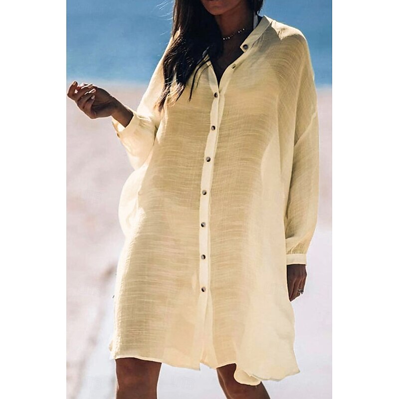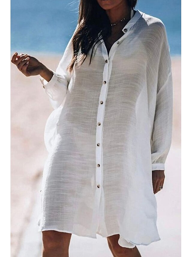 Women's Shirt Linen-Inspired Shirts Button Up Blouse Plain Modern Casual Long Sleeve Shirt Collar Long Tops Daily Holiday Going out Buttons White Yellow Pink Light Blue Summer 10