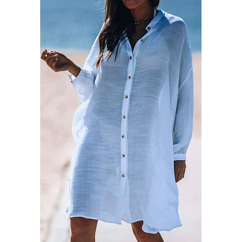 More information about Women's Shirt Linen-Inspired Shirts Button Up Blouse Plain Modern Casual Long Sleeve Shirt Collar Long Tops Daily Holiday Going out Buttons White Yellow Pink Light Blue Summer