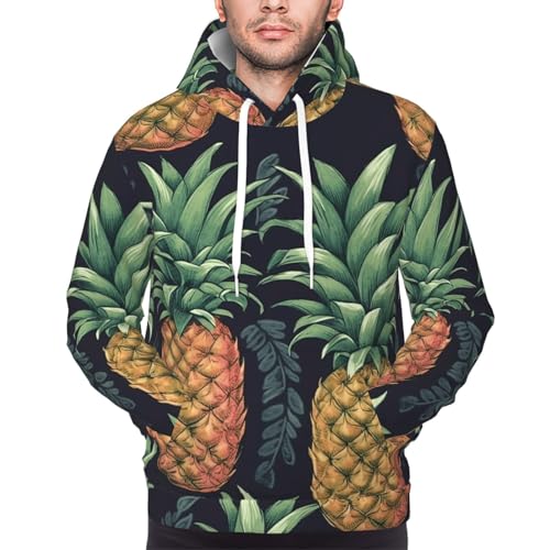 HOT ! Men's Fleece Pullover Hoodie Long Sleeve Hooded Pineapple Sweatshirt Casual Shirts With Pockets Small Black
