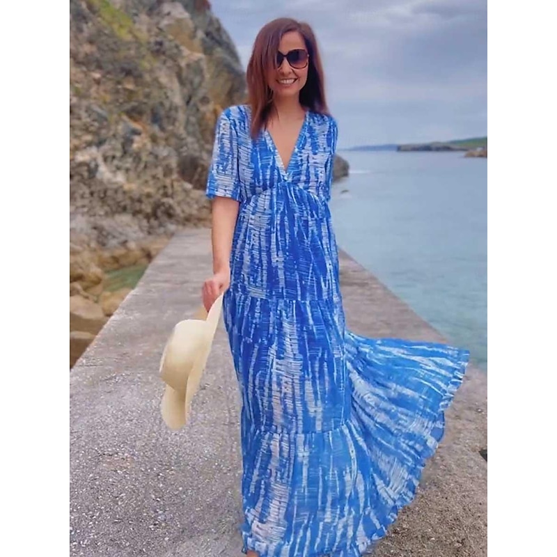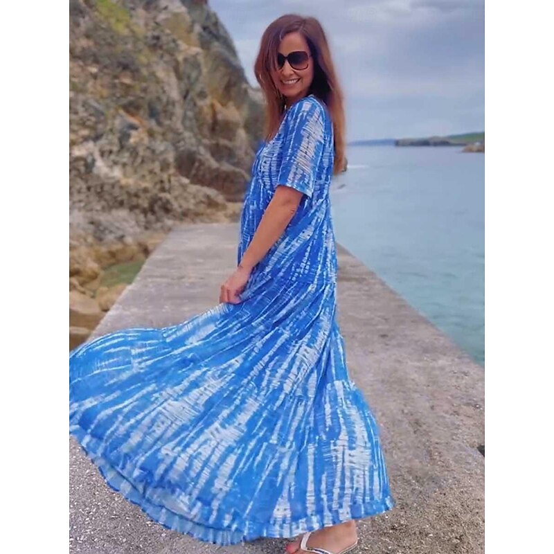 HOT ! Women's Long Dress Maxi Dress Casual Dress Chiffon Dress Swing Dress Summer Dress Streetwear Maxi Vacation Street Holiday Loose Fit Tie Dye Short Sleeve V Neck Blue Summer