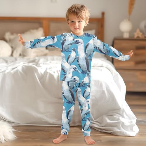 More information about Pajama Sets Long Sleeve Blue Footed Booby White Bird gentle Comfy Sleepwear 2 Piece PJS 3-8T