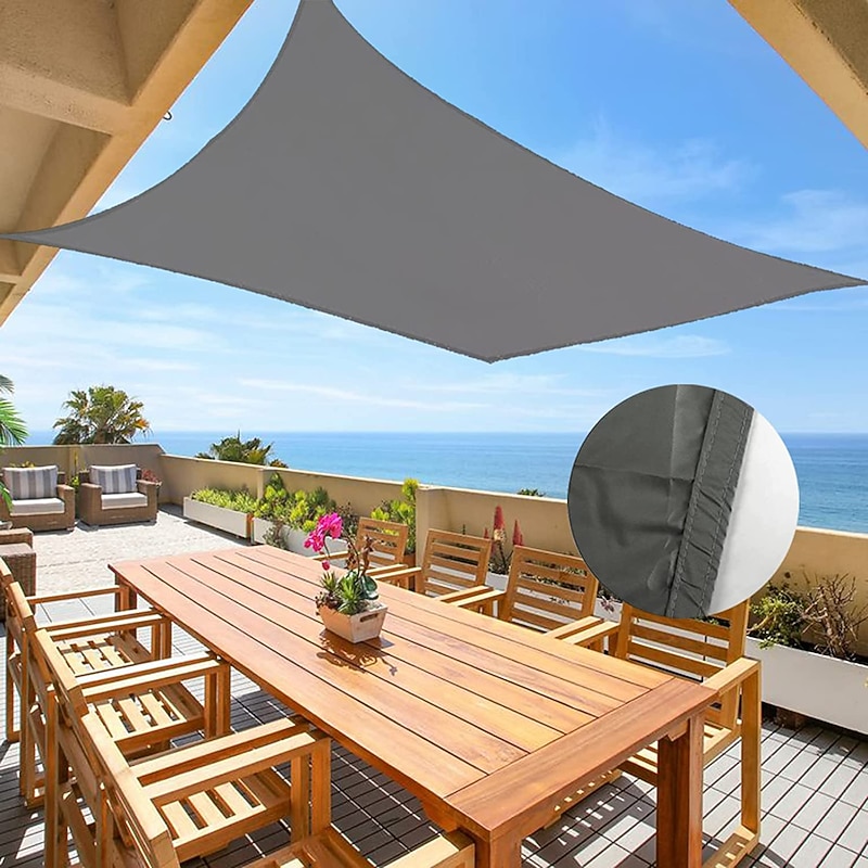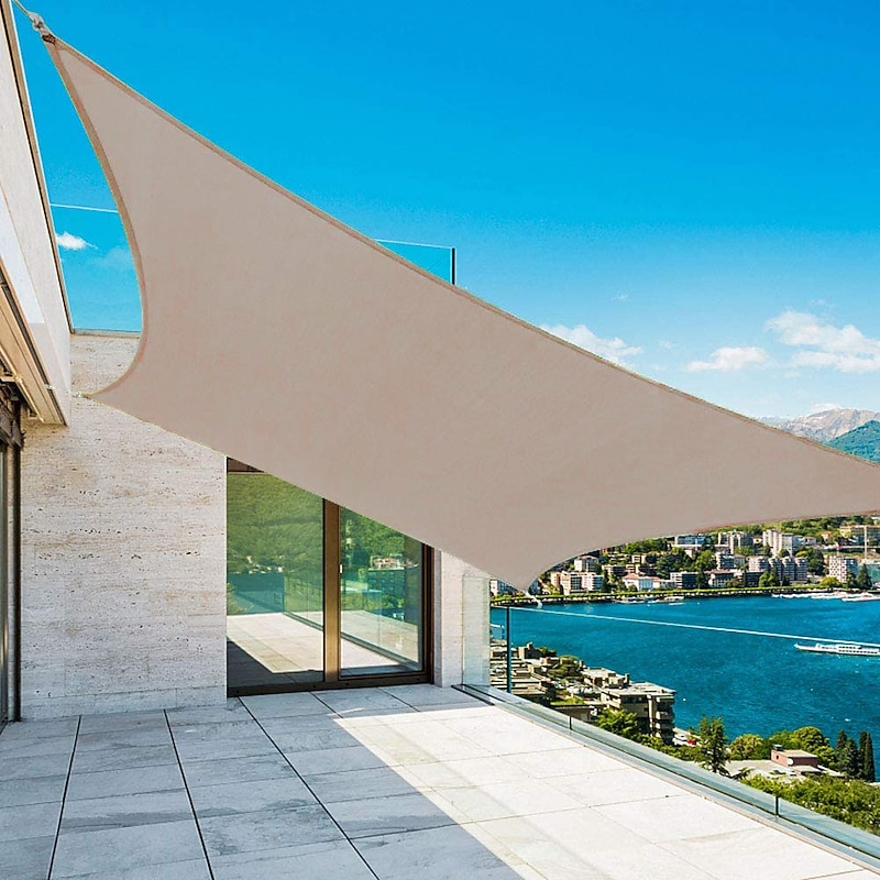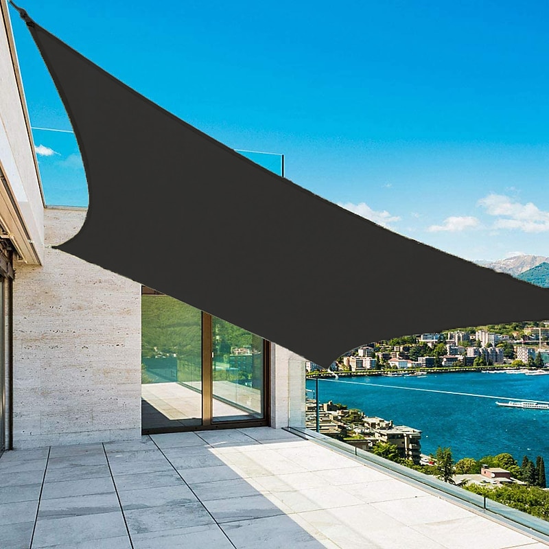 Highlights Product Selling Points: 1. Quality Materials: Made of 100% high density Oxford fabric with tear-resistant, waterproof, mildew-resistant, and stain-resistant properties. Ensures durability and provides a safe and cool area for you and your family. 2. 95% UV Blockage: The PU-coated (160 gsm) sun shade sail blocks 95% of harmful UV rays, reducing temperature and sunlight in shaded areas during summer. Creates a better airy and soft space and meets sun protection needs. 3. Easy to Set Up and Remove: Features durable stainless steel D-rings anchored in each corner for simple and safe installation with rope. Can be tilted 20 to 40 degrees for maximum tension and good drainage. Suitable for walls, fences, pillars, and trees. 4. Instructions for Use: The sun shade sail dimension range is from the metal ring to the metal ring. Can be supported by surrounding buildings or use a spreader bracket and wind rope. Clean with mild detergent or water, avoiding stiff brush or washing machine. 5. Practical & Multifunctional: Widely used over patios, lawns, ponds, decks, courtyards, backyards, parks, pergolas. Can also be set up in gardens, balconies, swimming pools, play areas, etc. Effectively reduces heat in outdoor living areas and provides protection from UV rays. Perfect for everyday use. superior materials and excellent craftsmanship ensure long-lasting durability.