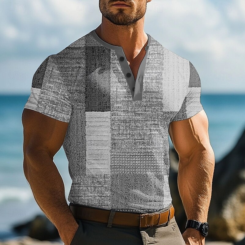 More information about Men's Plaid Patchwork T Shirt Henley Shirt Short Sleeve Designer Retro Vintage Trendy Street Casual Daily Summer Spring Gray Purple Blue Khaki Henley Henley T-Shirt
