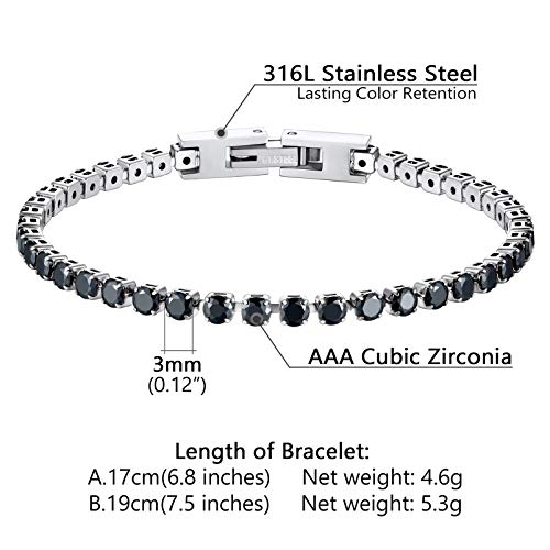 • Sparkly Tennis Bracelet: Featuring 3mm AAA+ Cubic Zirconia Stones in Four-Prong Basket Settings. Length: 6.5 inch/7.5 inch Two Sizes Available.