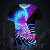 Highlights [Fabric] : Crafted from a soft and breathable polyester blend, this men's T-shirt ensures comfort and durability, perfect for both warmer days and layered outfits. The micro-elastic nature of the fabric allows for ease of movement and a comfortable fit throughout the day. [Fit] : Designed with a tailored fit, this T-shirt offers a classic crew neck and short sleeves, making it a versatile choice for casual outings or as a statement piece in a fashion-forward wardrobe. [Design Highlights] : Showcasing a bold abstract design with a dynamic combination of blue, pink, and purple hues, this T-shirt features a striking 3D geometric effect. The graphic visual deception pattern adds a modern and eye-catching look, embodying both style and sophistication. [Occasions] : Ideal for street sports, outdoor activities, or casual gatherings, this T-shirt blends fashion with functionality. Its unique design and vibrant colors make it perfect for making a stylish statement in various settings, from sports events to social outings. [Sizes] : Available in a wide range of sizes from S to XXXL, this T-shirt caters to various body types, ensuring a tailored fit for adults seeking a fashionable and comfortable addition to their wardrobe.