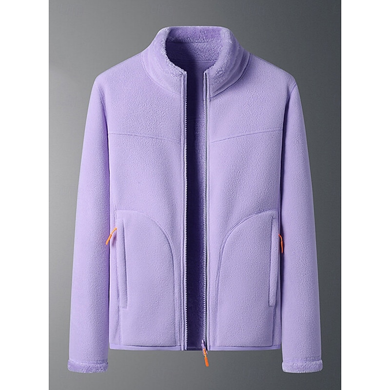 More information about Women's Sherpa Jacket Comfortable Breathable Zipper Pocket Casual Plain Vacation Street Casual Daily Wear Zipper Regular Stand Collar Regular Fit Long Sleeve Outerwear White Pink Purple Spring Fall