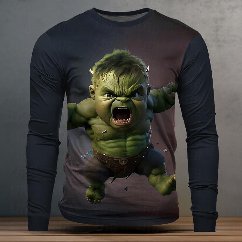 More information about Men's Graphic Cartoon Funny T Shirt Long Sleeve T shirt 3D Print Crew Neck Shirt Designer Casual Street Style Sports Outdoor Holiday Going out Burgundy Blue Purple Spring & Fall Clothing Apparel S M