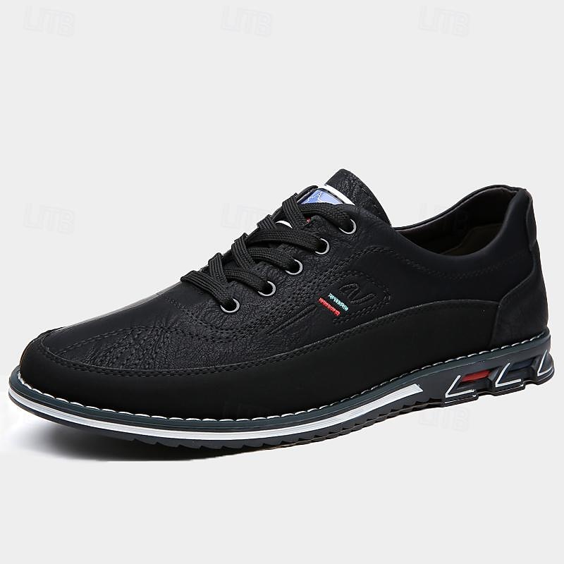 Men's Casual Leather Sneakers with Black Lace-Up Design and Comfortable Sole for Everyday Wear, Walking, and Travel