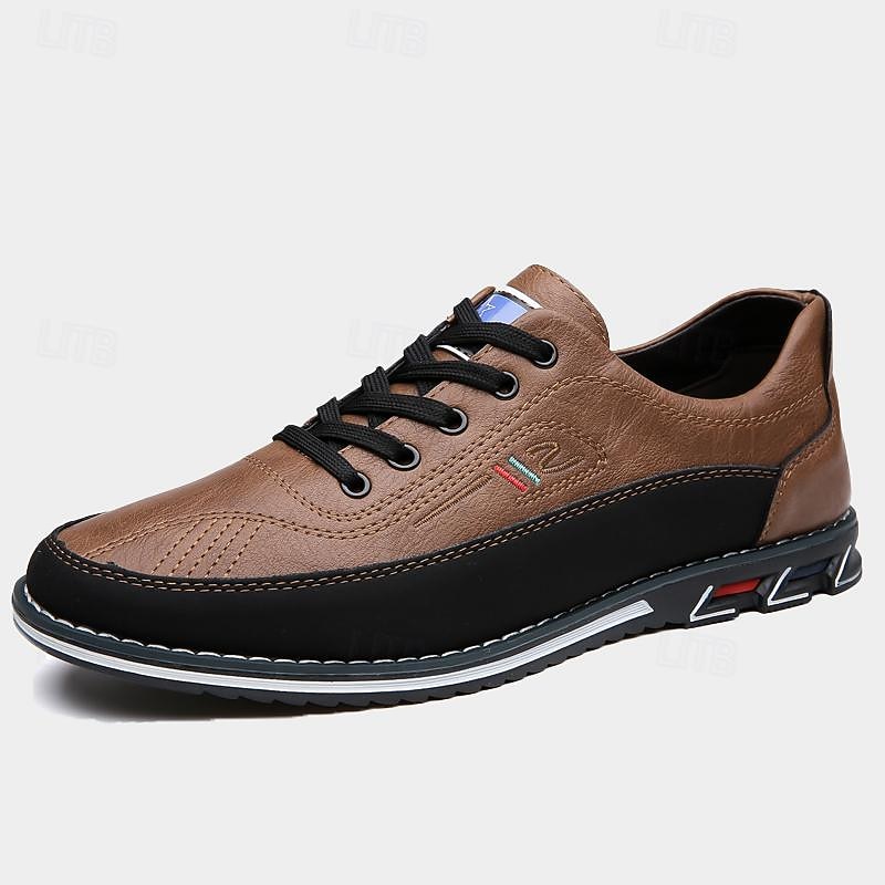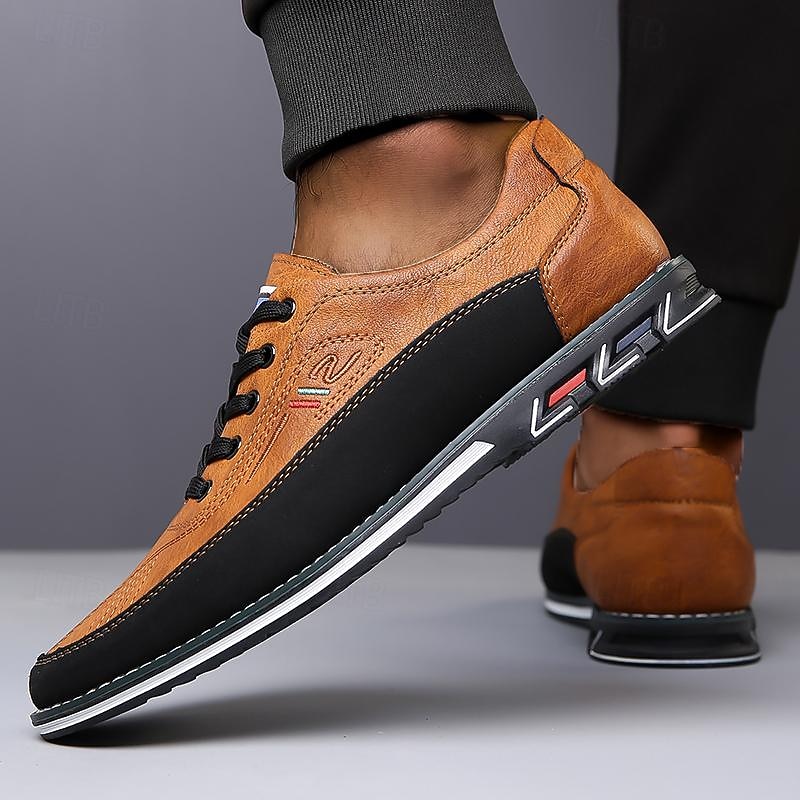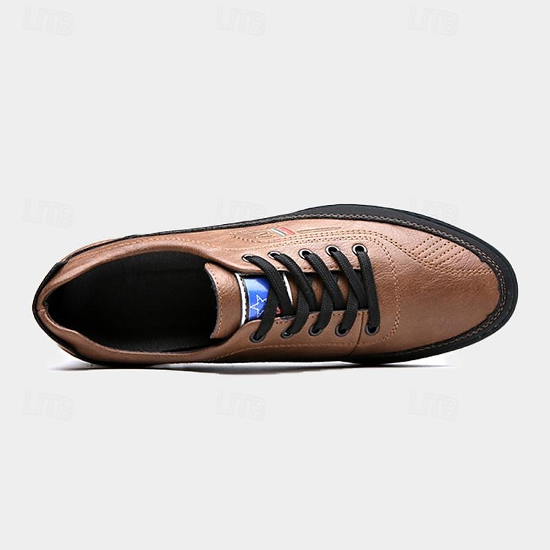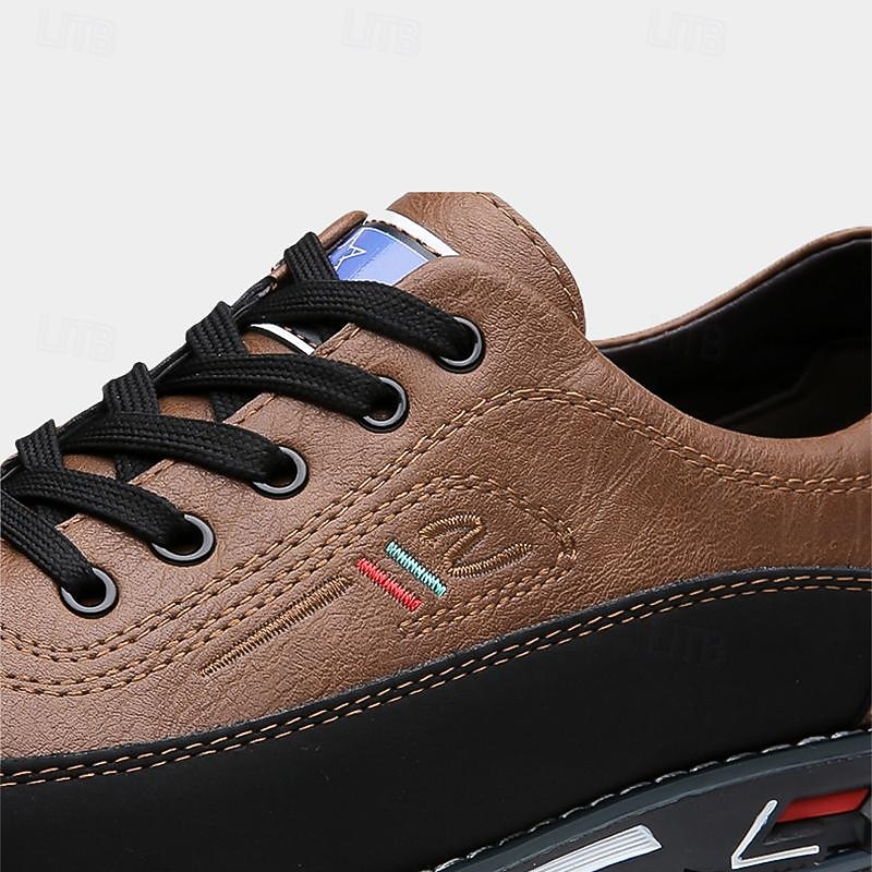 : Crafted from high-quality PU leather, these men's casual sneakers offer a sophisticated and durable finish. The leather-like texture, available in a variety of colors including Black, White, Gray, Brown, and Yellow-Brown, combines a sleek appearance with long-lasting durability.
