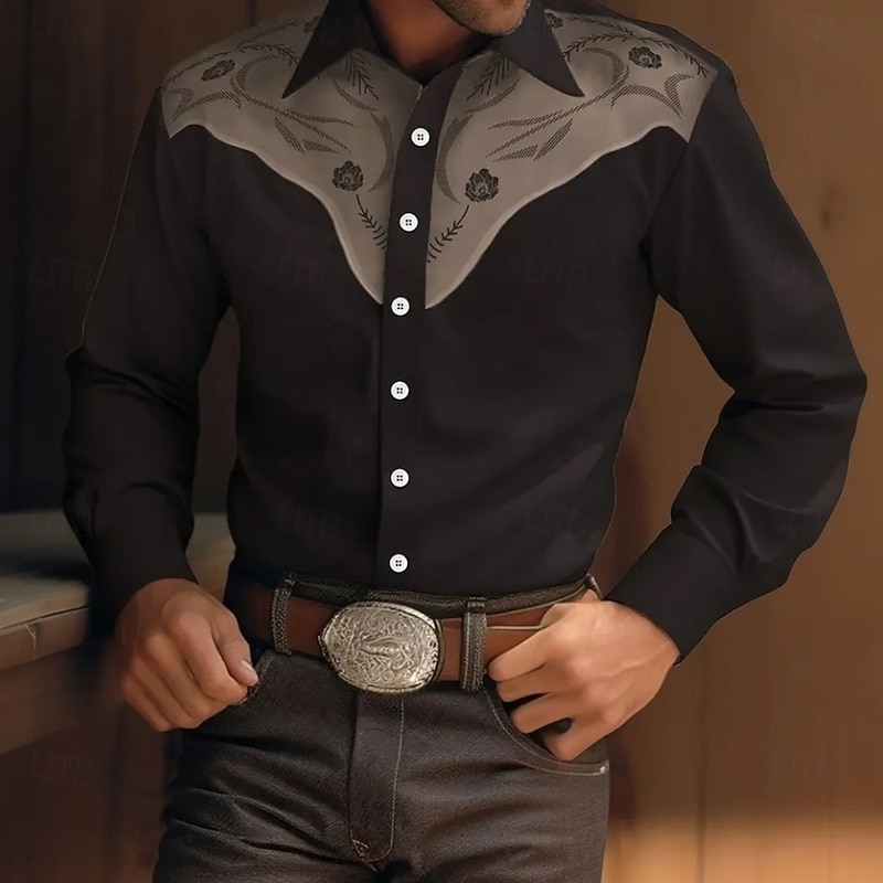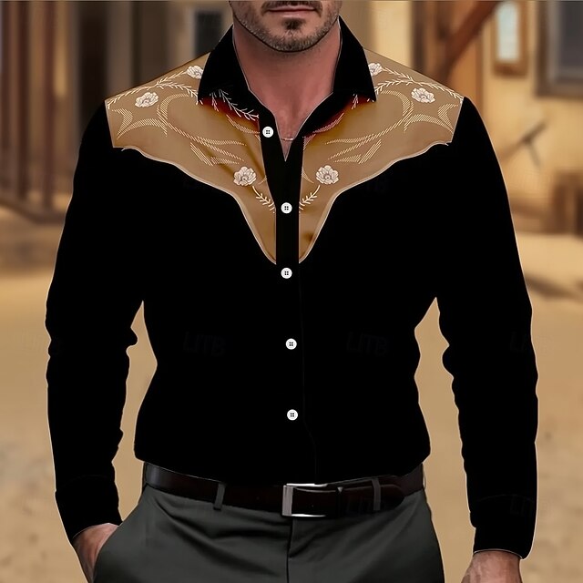 More information about Men's Floral Print Flowers Western Shirt Button Up Shirt Cowboy Shirt Long Sleeve Western Vintage Retro Outdoor Casual Summer Spring Fall Turndown 3D Print Collared Shirts Brown Khaki Gray
