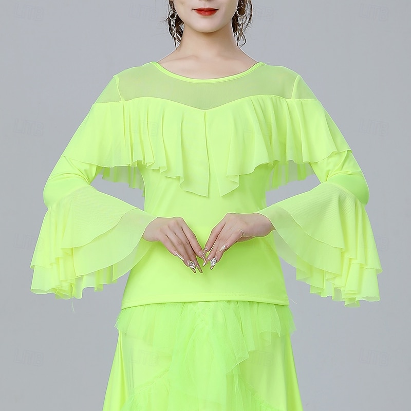 Latin Dance Top Ruffles Pure Color Splicing Women's Performance Training Long Sleeve High Polyester 9
