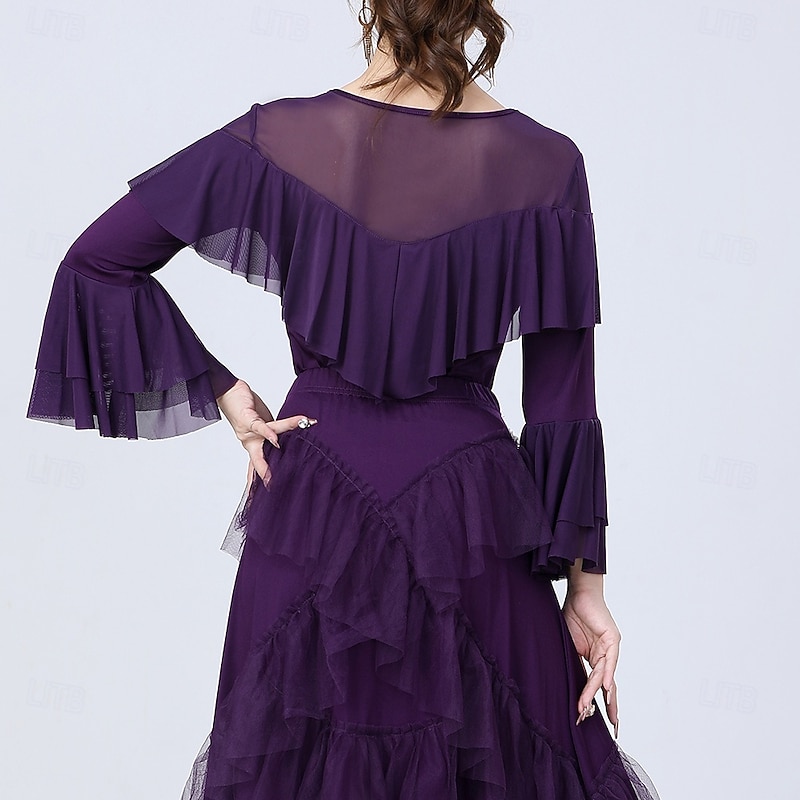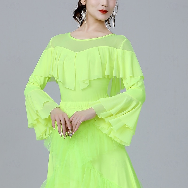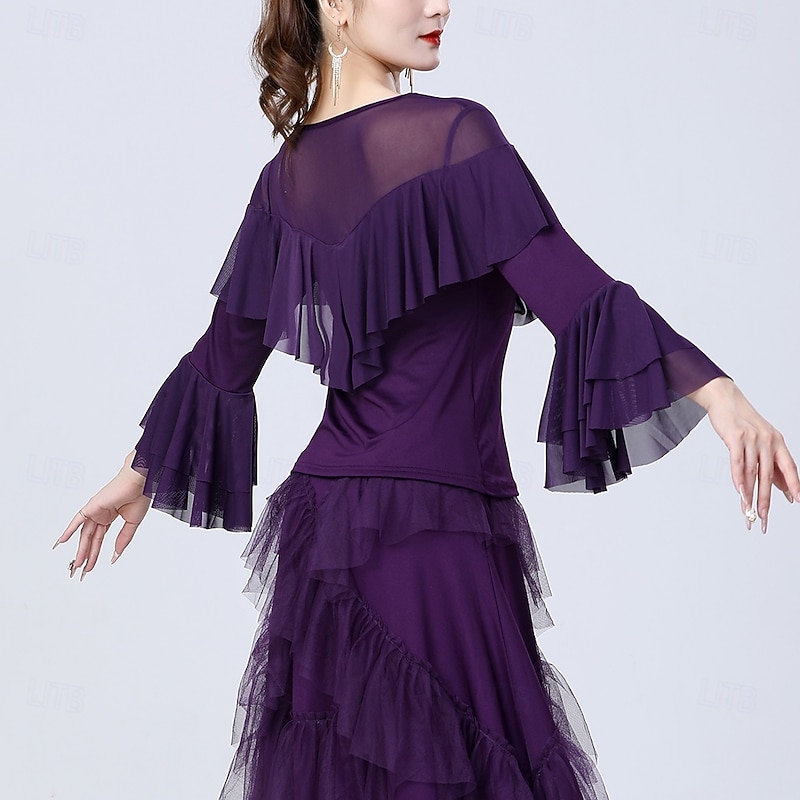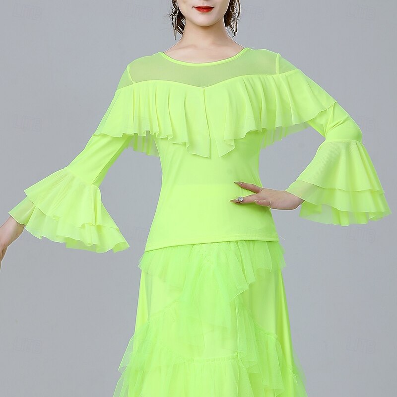 More information about Latin Dance Top Ruffles Pure Color Splicing Women's Performance Training Long Sleeve High Polyester
