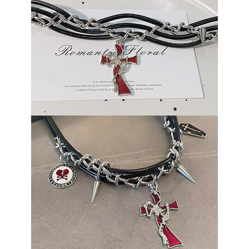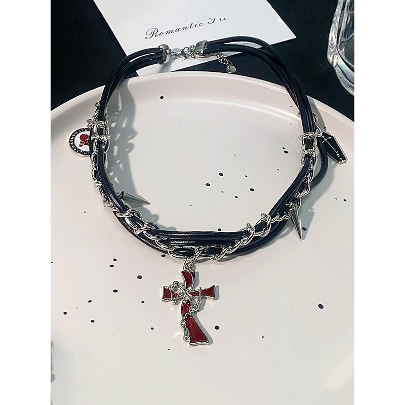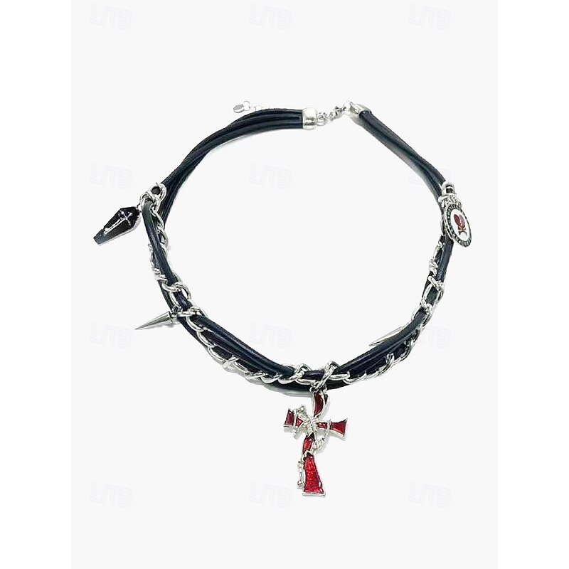 $11.99 - Gothic Punk Chain Necklace with Spiked Cross Pendant, Black and Silver Statement Jewelry for Halloween, Cosplay, and Alternative Fashion 2025. Shop for cheap Halloween Accessories online? Buy at lightinthebox.com on sale today!