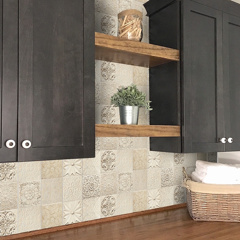 More information about 24pcs Creative Imitation 3d Stone Carving Art Wall Stickers Kitchen Bathroom Living Room Self-adhesive Wall Stickers Waterproof Tile Stickers