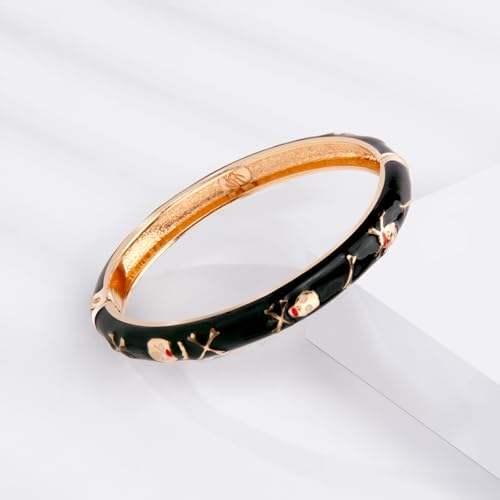 wynameleri Vintage Cloisonne Jewelry Handcrafted Skull Enameled Rose Gold Hinged Cuff Bracelet Bangles Gifts