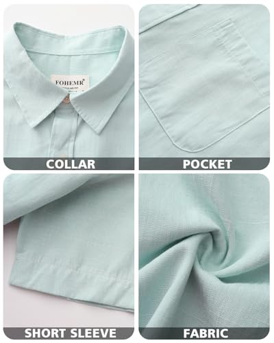 More information about Mens Cotton Linen Short Sleeve Shirts Casual Lightweight Button Down Shirts Vacation Beach Summer Tops with Pocket