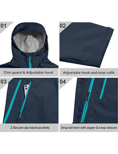 • VERSATILE - Feel protected, even in the worse conditions with this waterproof-breathable rain jacket. Suitable for any outdoor activitie such as Golf, traveling, hiking, sailing, fishing, camping and daily wear.