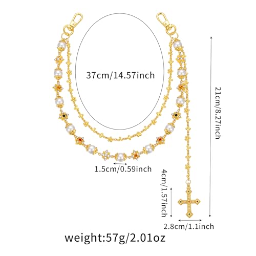 GZQ Layered Gold-tone Pants Chain for Women Men Cross Luxury Pearl Wallet Chain Jean Chains for Women Jewelry(NN37)
