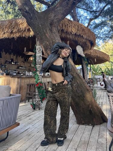 More information about Y2K Leopard Jeans for Women - Baggy Unisex Cheetah Print Straight Leg Denim with Pockets, Casual Streetwear