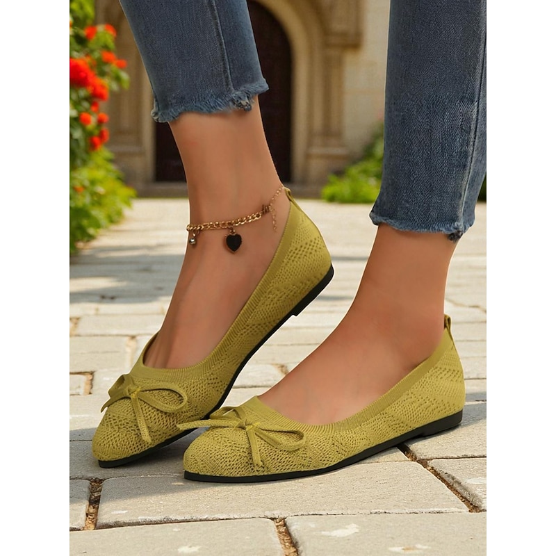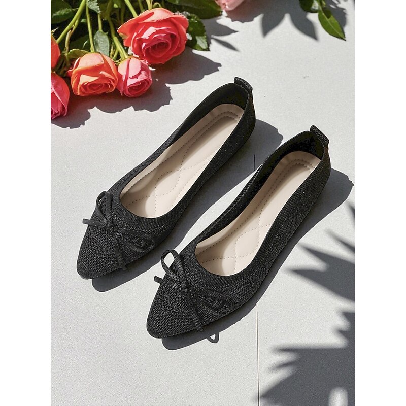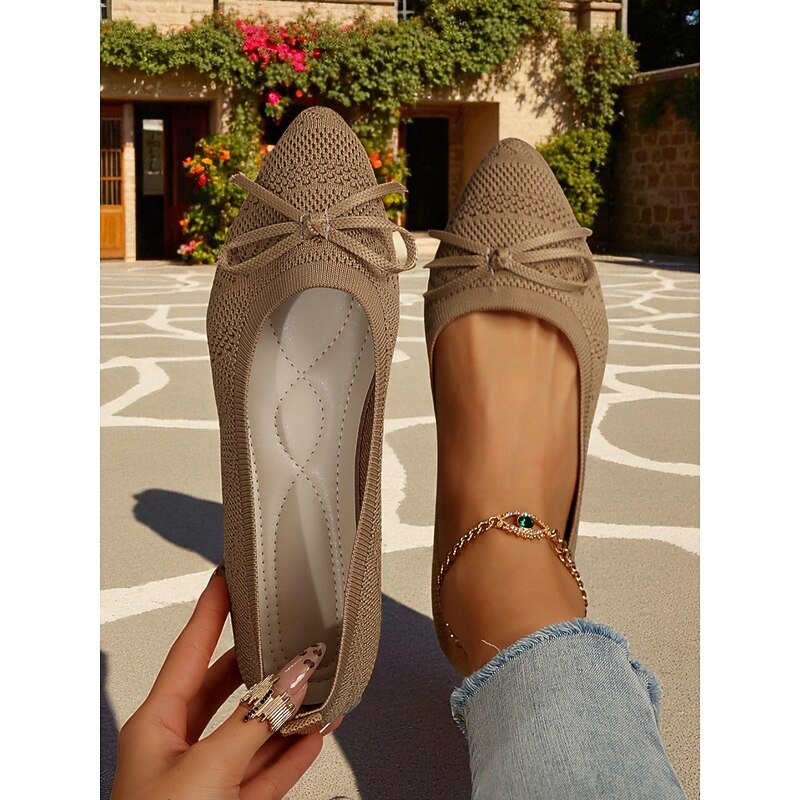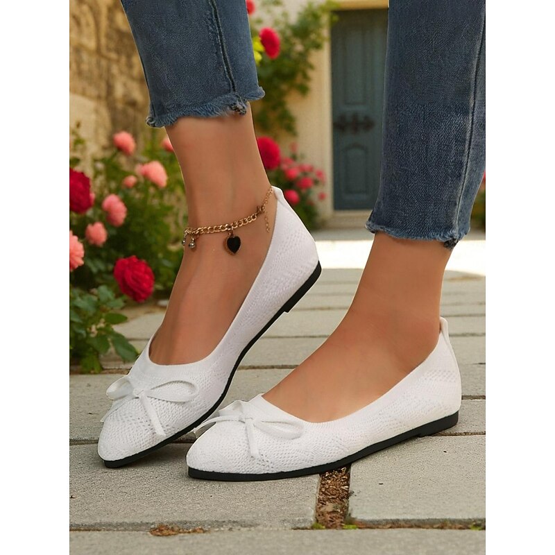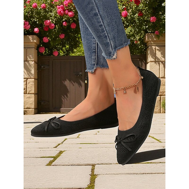 HOT ! Women's Flyknit Bow Ballet Flats – Lightweight Breathable Elegant Casual Shoes for Daily Wear, Outdoor Park Walks and Spring Garden Picnics