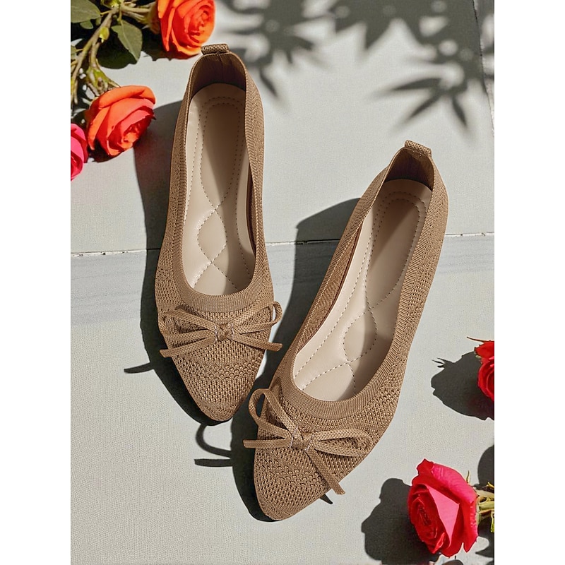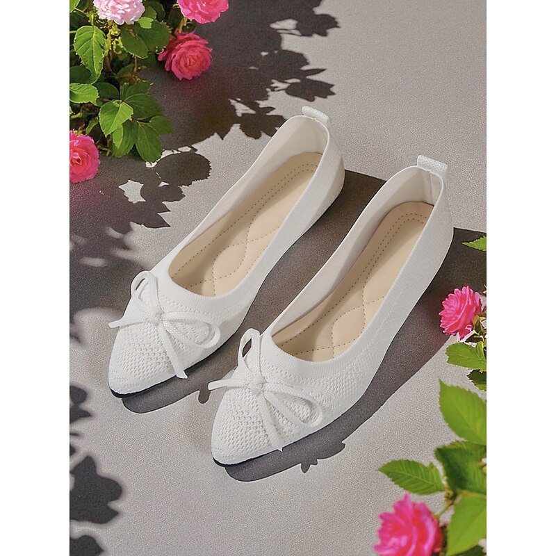 Women's Flyknit Bow Ballet Flats – Lightweight Breathable Elegant Casual Shoes for Daily Wear, Outdoor Park Walks and Spring Garden Picnics 20
