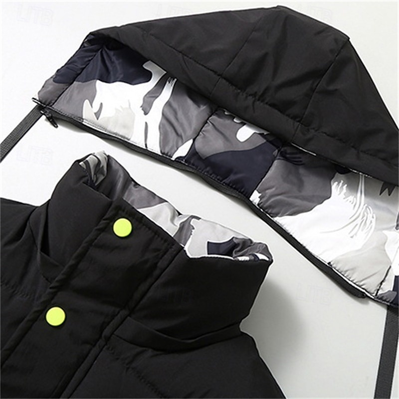 More information about Men's Puffer Vest Hoodie Vest Padded Gilet Quilted Vest Daily Date Vacation Fashion Casual Fall & Winter Pocket Polyester Warm Comfortable Graphic Zipper Hooded Regular Fit Black White Blue Gray Vest