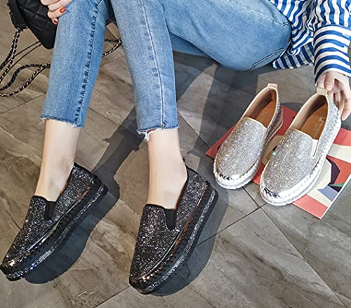 HINDOLA Women's Sparkly Fashion Sneakers Rhinestone Slip on Flatform Loafers Low Top Bling Casual Walking Shoes
