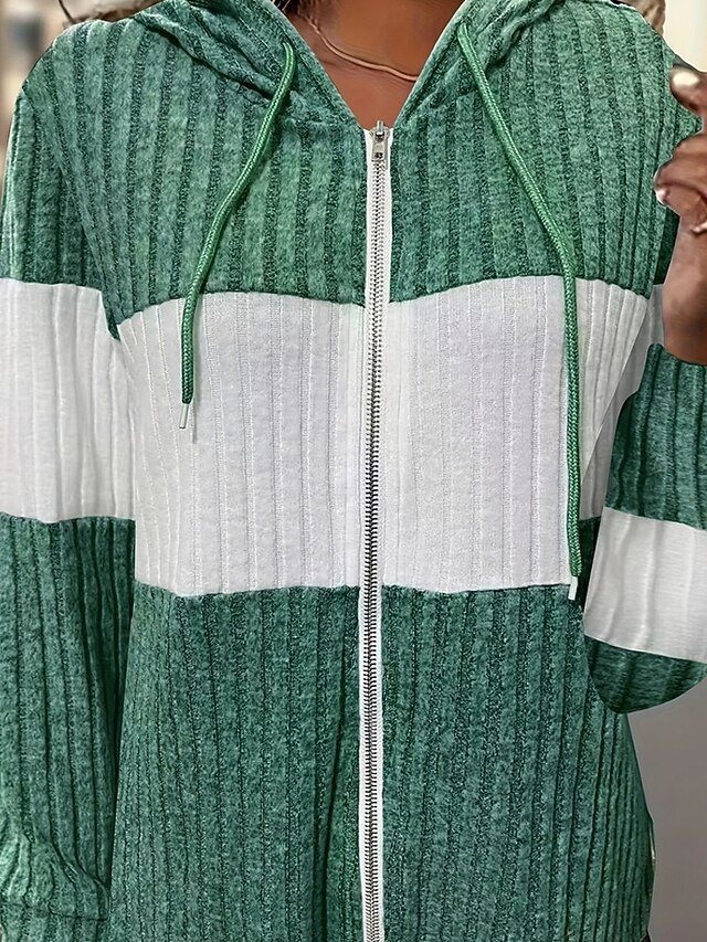 HOT ! Women's Pullover Hoodie Sweatshirt Zip Up Hoodies Color Block Streetwear Casual Long Sleeve Hooded Regular Tops Street Dailywear Zipper Pocket Green Fall Winter