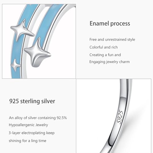 Kokoma Star Sterling Silver Ring for Women Blue Enamel Meteor Engagement Promise Band Open Statement Rings Expandable 3