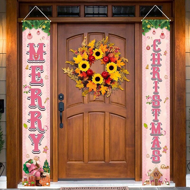$8.49 - Pink Christmas Door Banner Set 30x180cm, Holiday Front Door Hanging Signs, Xmas Porch Decoration Couplets 2025. Shop for cheap Christmas Tapestry Hanging online? Buy at lightinthebox.com on sale today!