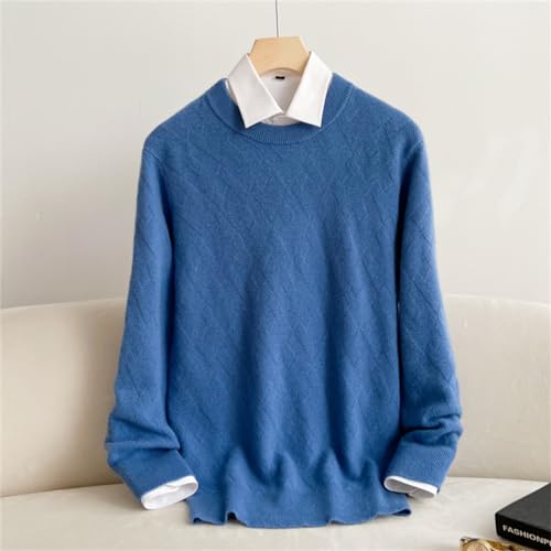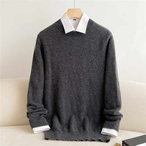 Men 100% Solid Cashmere Neck Solid Color Pullover Round Retro Cold Proof Blouse Sweater
