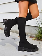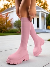 More information about Women's Red Flyknit Knee High Platform Boots – Chunky Sole Fashion Sock Boots for Streetwear and Casual Outfits