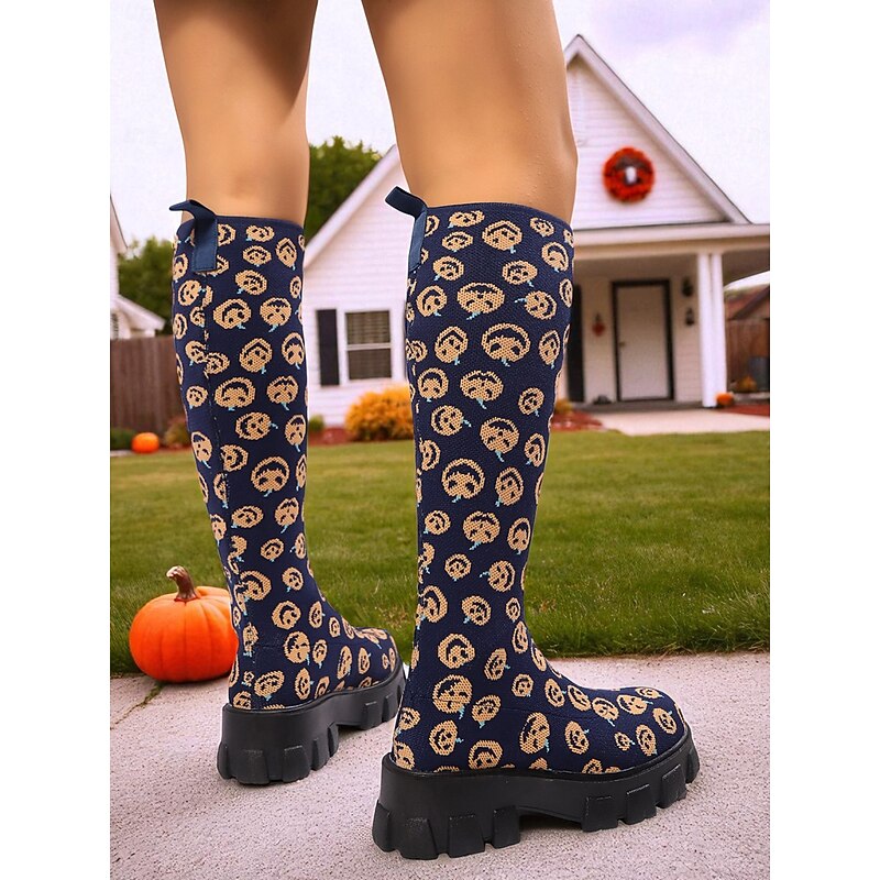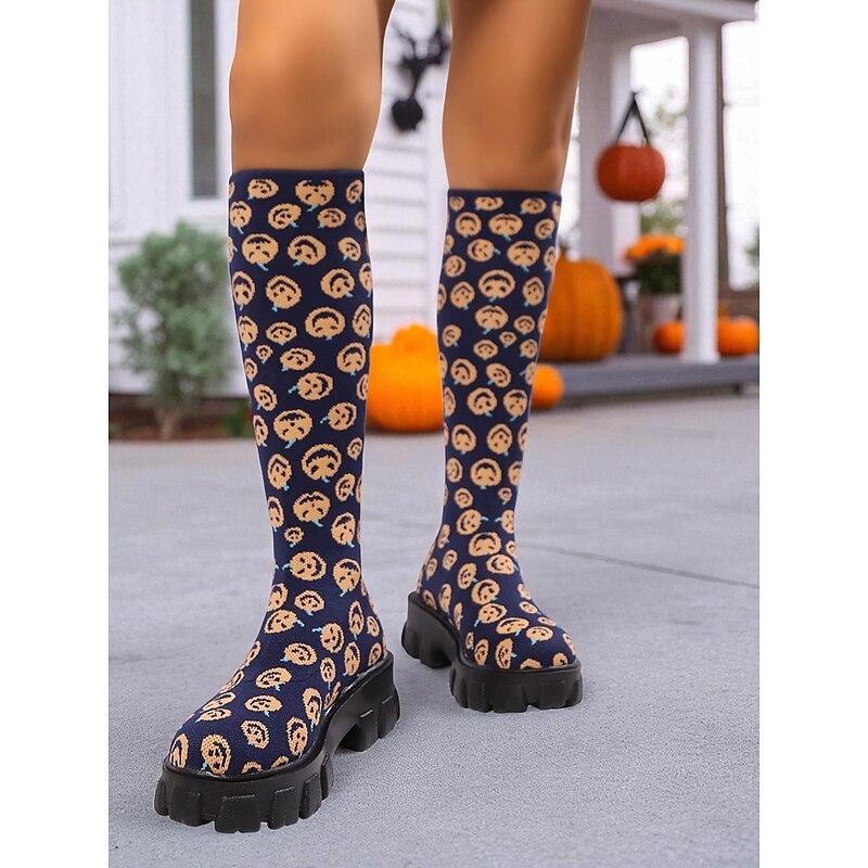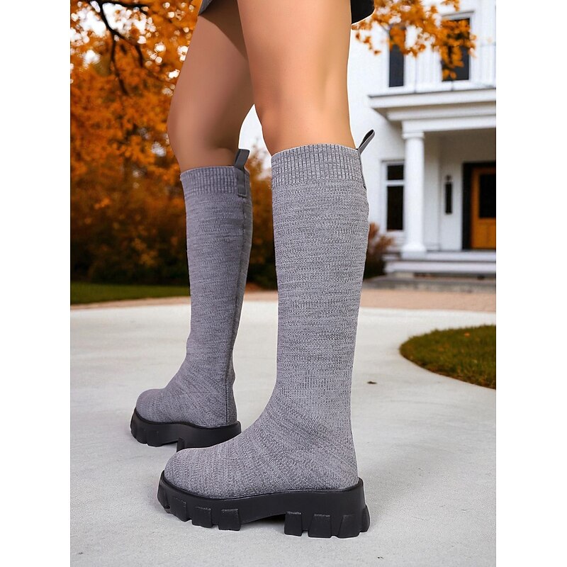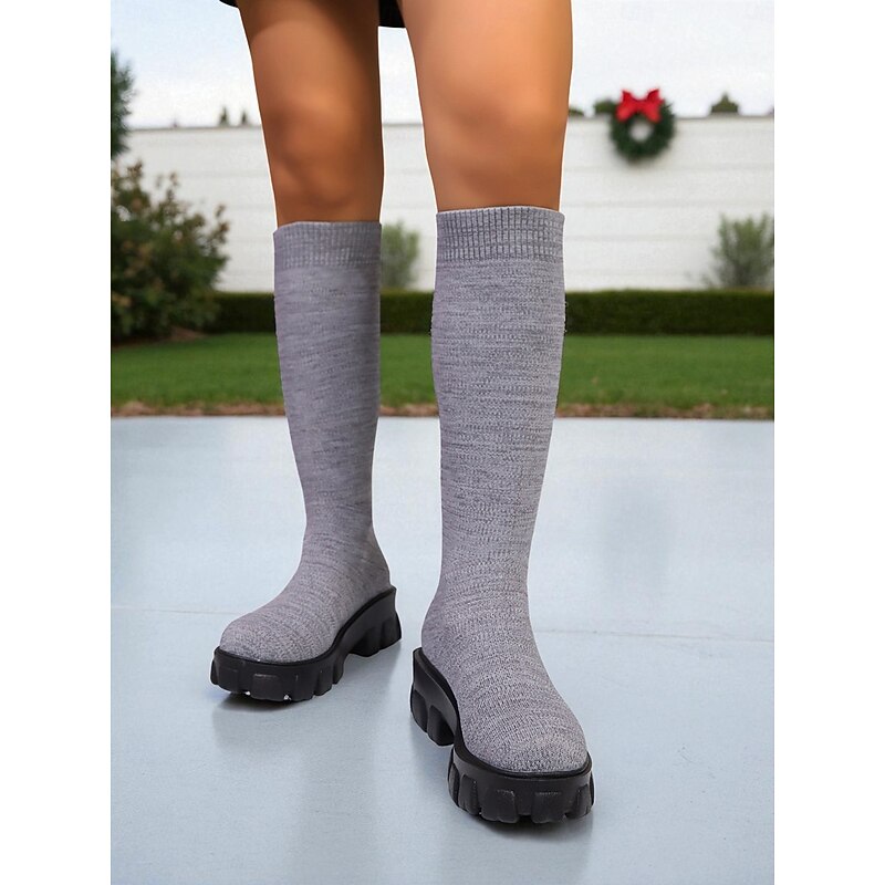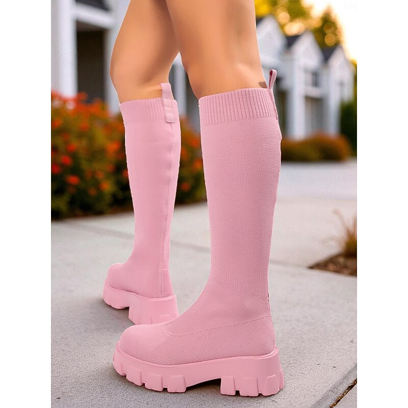 Women's Red Flyknit Knee High Platform Boots – Chunky Sole Fashion Sock Boots for Streetwear and Casual Outfits 24