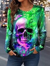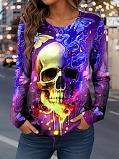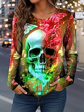 More information about Halloween Women's T Shirt Skulls Graphic Fashion Casual Long Sleeve Crew Neck Regular Tops Daily Weekend Print Red Blue Purple Green Spring Fall Winter