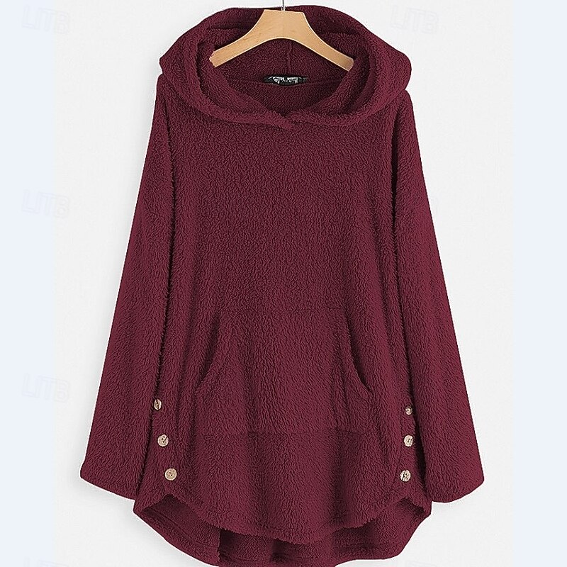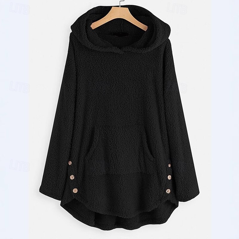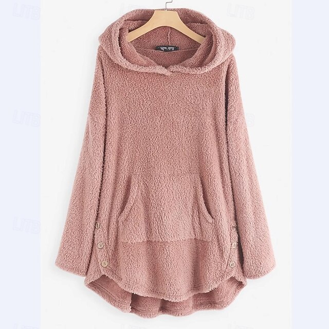 More information about Women's Pullover Hoodie Sweatshirt Plain Casual Long Sleeve Hooded Regular Tops Street Dailywear Casual Pocket Buttons Black White Pink Red Green Fall Winter