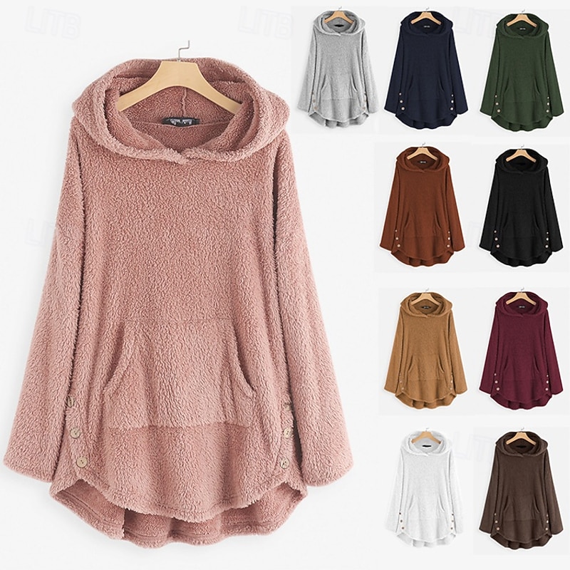 Women's Pullover Hoodie Sweatshirt Plain Casual Long Sleeve Hooded Regular Tops Street Dailywear Casual Pocket Buttons Black White Pink Red Green Fall Winter 9