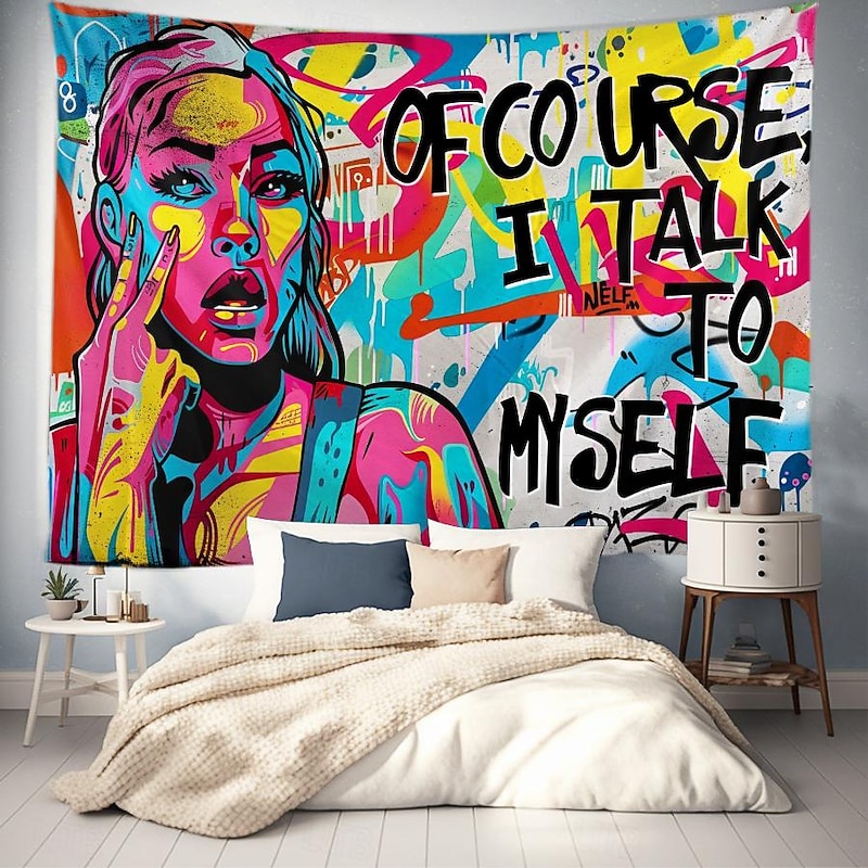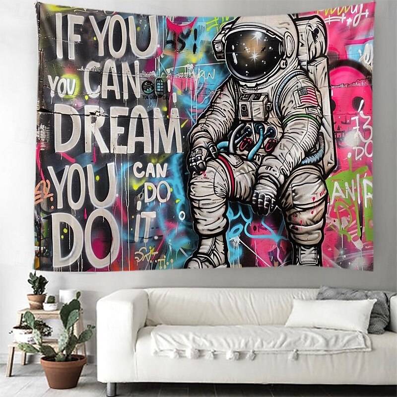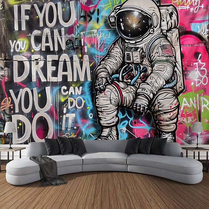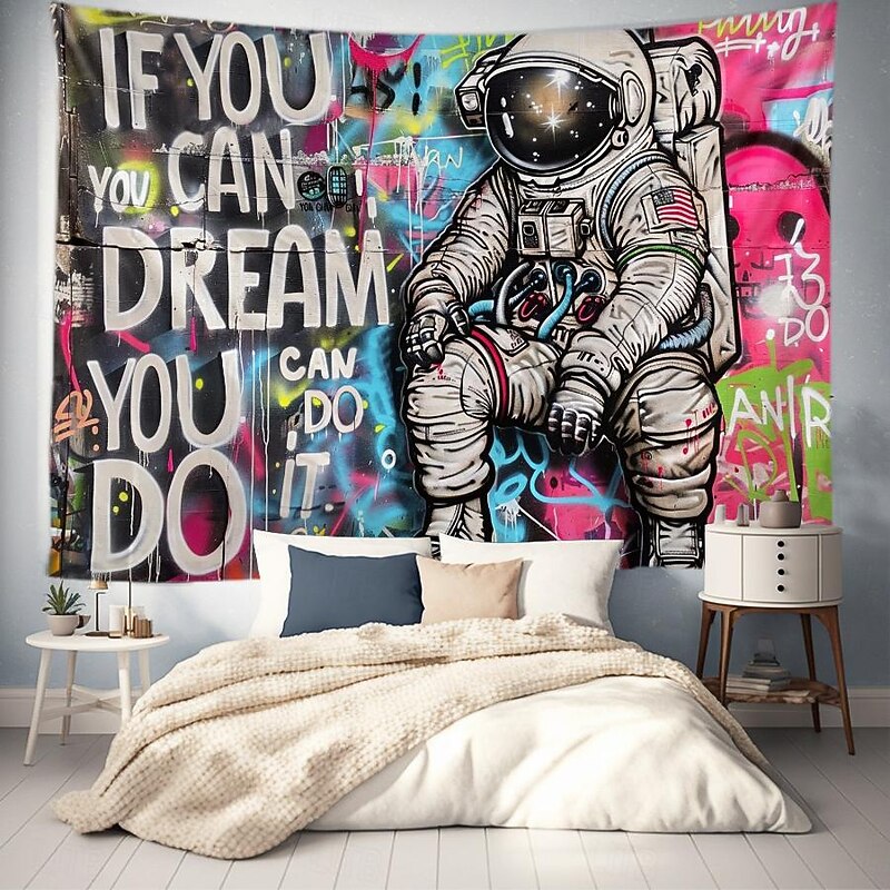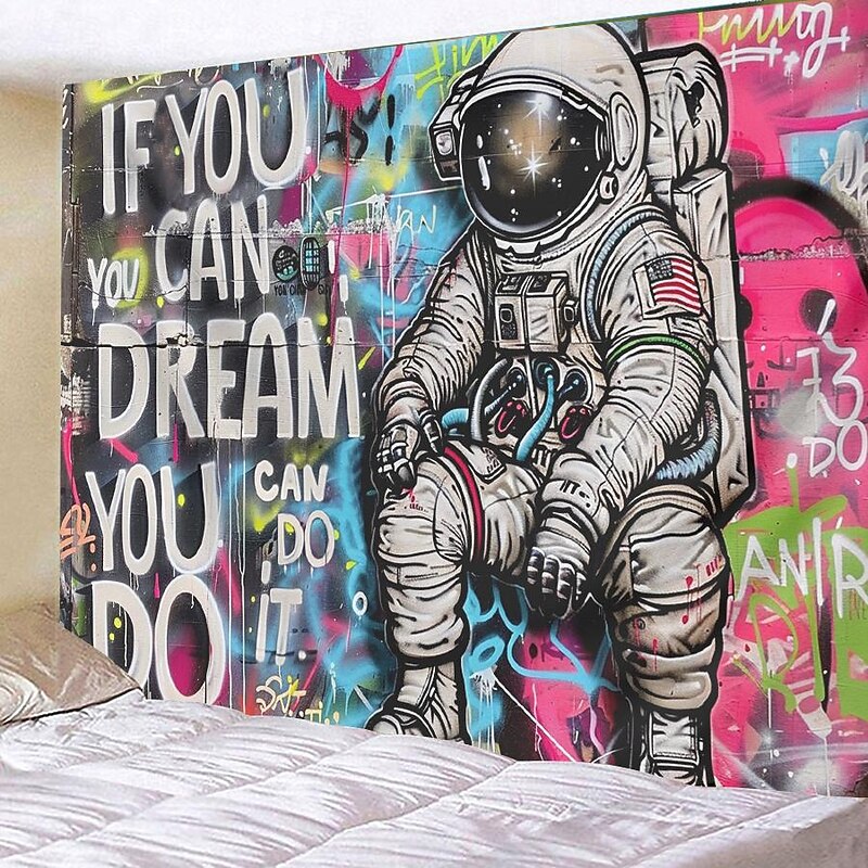 Street Graffiti Astronaut Hanging Tapestry Wall Art Large Tapestry Mural Decor Photograph Backdrop Blanket Curtain Home Bedroom Living Room Decoration