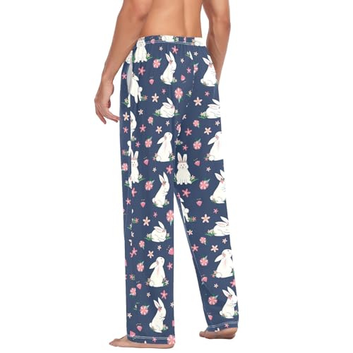 Why Choose Mens Cotton Pajama Pants with Pockets Bunny Easter Flowers Rabbit gentle Lounge Sleep PJ Pants Men Drawstring?