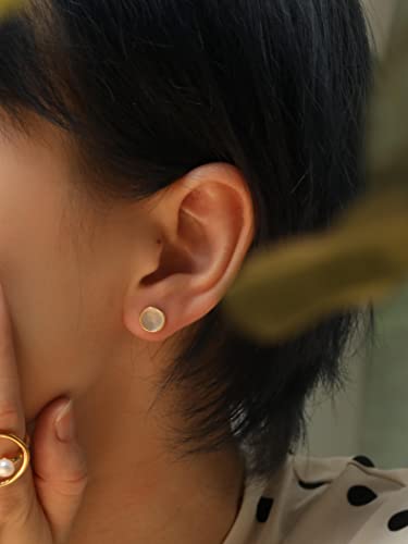 S.Leaf Shell Earrings Mother of Pearl Earrings Silver Stud Earrings for Women Hypoallergenic Earrings Round Disc Stud Earrings for Women 6