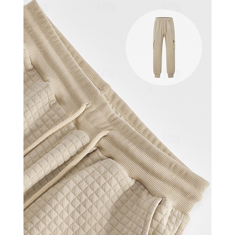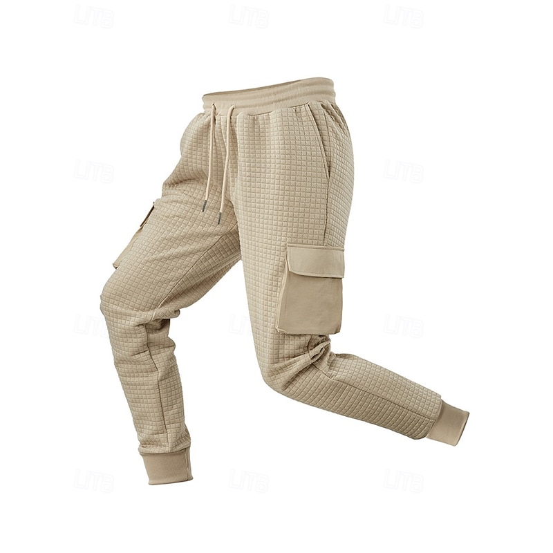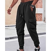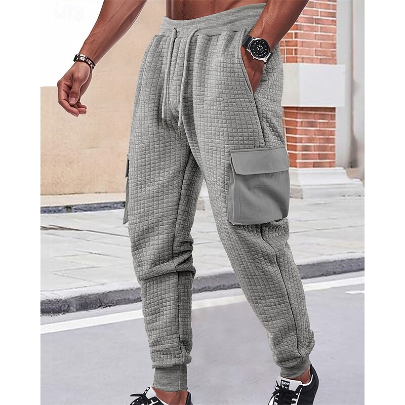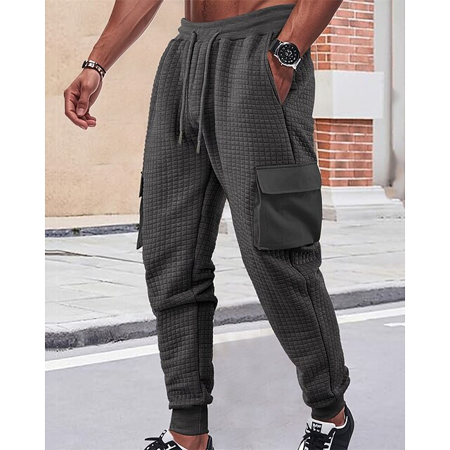 More information about Men's Sweatpants Joggers Trousers Cargo Sweatpants Waffle Pants Elastic Waist Drawstring Multi Pocket Plain Comfort Sports Outdoor Daily Fashion Casual Black White Micro-elastic