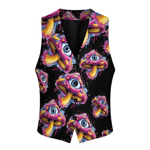 Eye Mushroom Men's Suit Vest Slim Fit Business Dress Party Pattern Waistcoat Vest Top