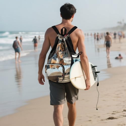 More information about Mesh Gym Swimming Bags for Men & Women, Cute Funny Reading Dog Large Drawstring Backpack with Dry-Wet Pocket, Lightweight Gym Bag for Sports, Travel, Beach, Workout Gear